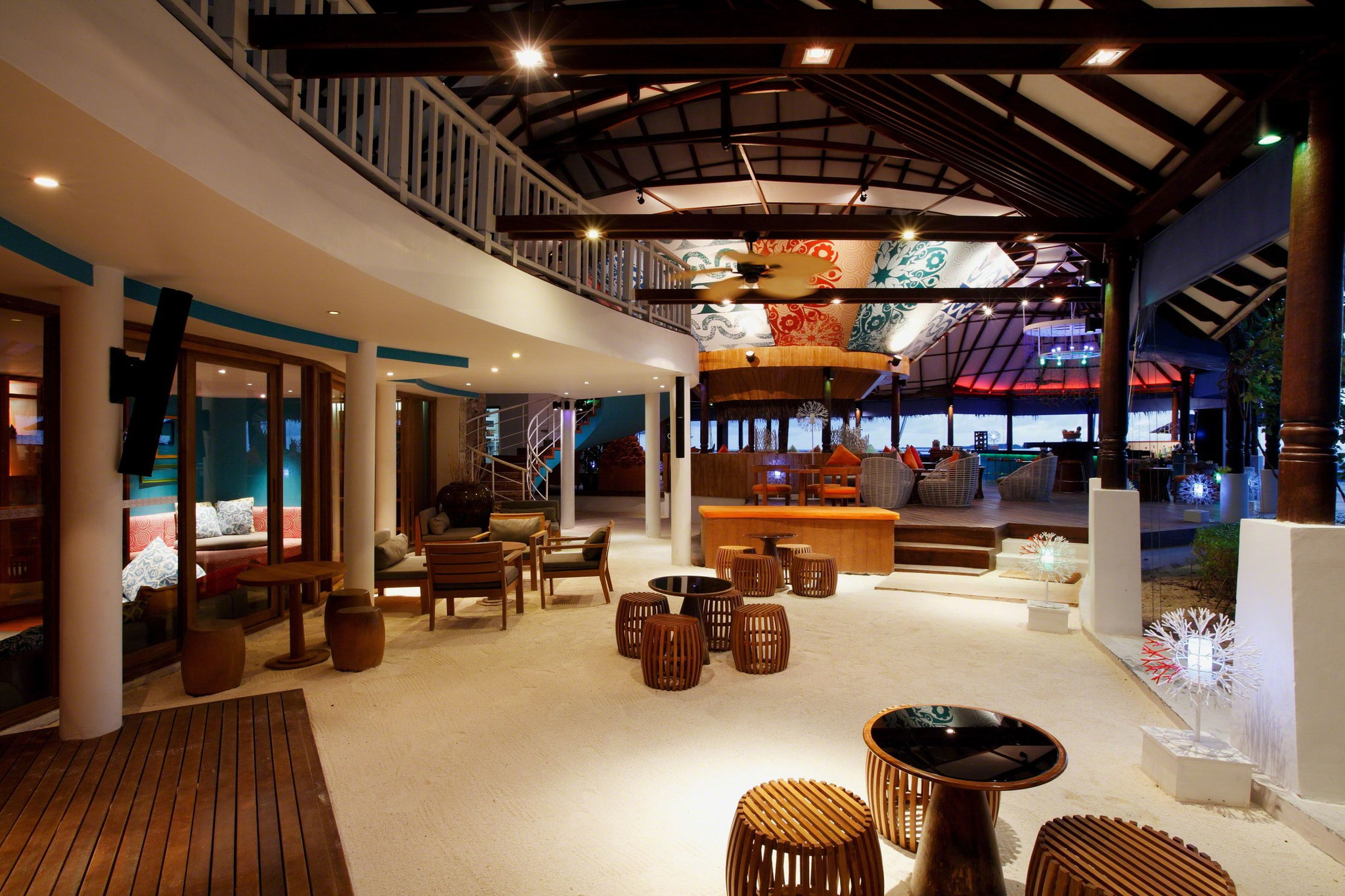 Ga in de late avond naar Aqua voor een heerlijk aperitief tegen de schitterende achtergrond van de sprankelende blauwe lagune. Coral Bar & Lounge maakt een creatief aanbod eilandachtige cocktails die een zoete sluimer beloven. Om verder te ontspannen kan je ontbijt of brunch op bed bestellen via de dinerservice op de kamer. Wat je ook wil, wanneer je maar wil, je kan gewoon bellen en ze brengen je favoriete eten naar het comfort van je villa.